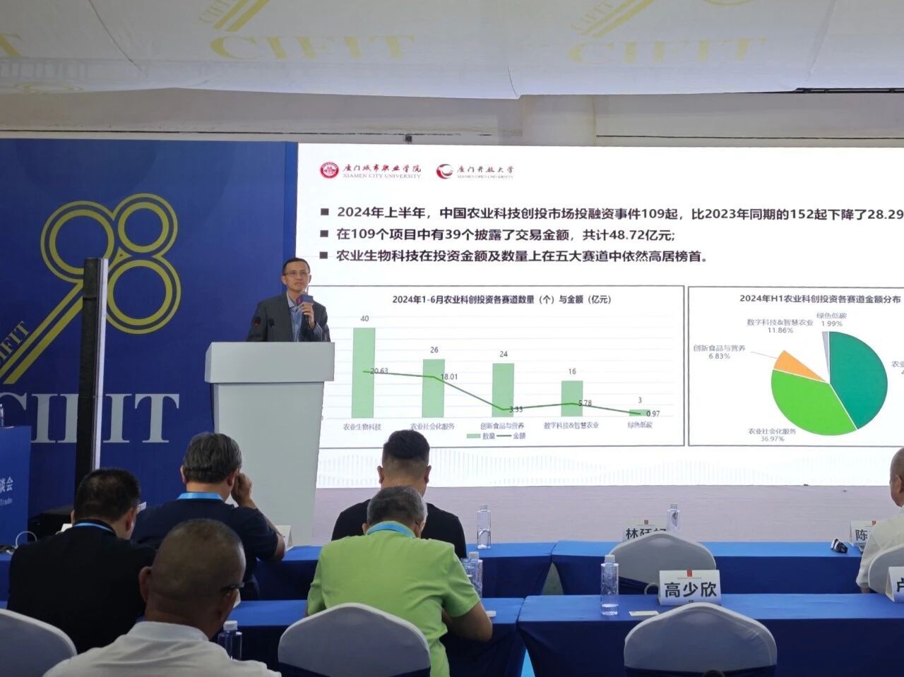 9月10日上午,财经商贸学院副院长林智章受邀出席第二十四届中国国际投资贸易洽谈会“海峡两岸现代农业产业对接会”,并作题为《农业现代化驱动下的农业科技创投:挑战与机遇》的主题报告。