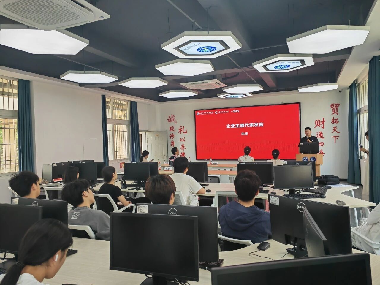 数智商业运营创新实践订单班是以“产教融合、实战育人”为核心理念,由财经商贸学院联合厦门一亩鲜生供应链集团有限公司,依托其企业真实数智商业项目与学院专业教学资源,基于理论到创业实战的全链条培养模式,创业扶持与高质量就业并举,面向全校所有专业学生开放的实践班,目前1期实践班已有来自全校7个教学学院12个专业的45名学生报名参加。